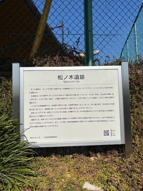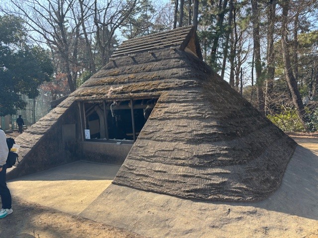 郷土博物館から和田堀公園の中を歩くとすぐに松ノ木遺跡の住居跡に遭遇する。縄文、弥生、古墳時代の集落跡が発見された区内でも最大級の遺跡で、古墳時代の住居跡が復元されている。ガラス窓の中をのぞくと当時の暮らしぶりを見る事が出来る。