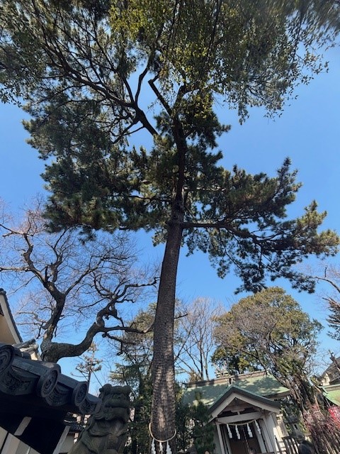 熊野神社は鎌倉から移住した武士による創建と伝わっており、境内のクロマツは都内有数の巨樹だ。