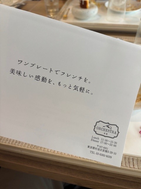 最初に載せた地図の通り東高円寺駅から荻窪駅まで散策するとだいたい1万5000歩から2万歩くらいになっているはずだ。ちょうど時間もお昼となりレストランでランチタイム。オーケストラというお店だ。(かなり混んでいたので要予約)